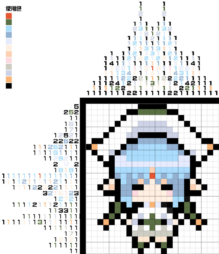 この数字を見ながら縦26×横23ピクセルのキャンバスにポチポチすると楽