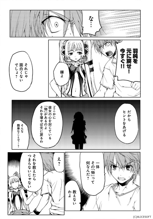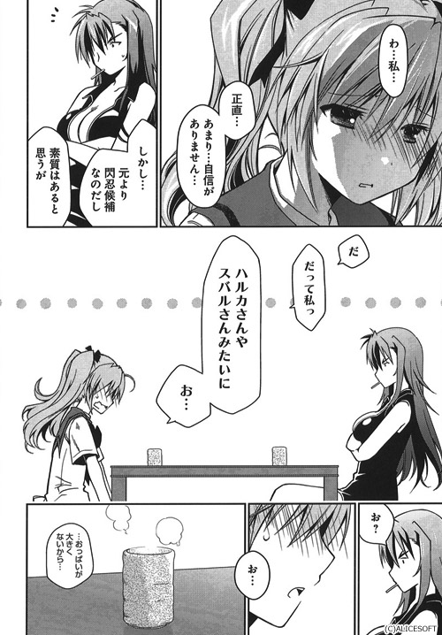 | 迷宮での激しい戦闘を繰り返す日々を送るナクト。指輪の淫力の補充の為、フィオリからの「ご褒美」として現れたのは…?! 矢吹豪さん作画の「闘神都市3」。 ノロイ党との戦いが続き、ハルカが過労で倒れてしまう。 スバルも万全の状態ではない。そんな中、ナリカも覚悟を決める…! ぽんこつわーくすさん作画の「超昂閃忍ハルカ」。 以上の2作品が掲載されています。 「戦国ランス」はお休みです。 |