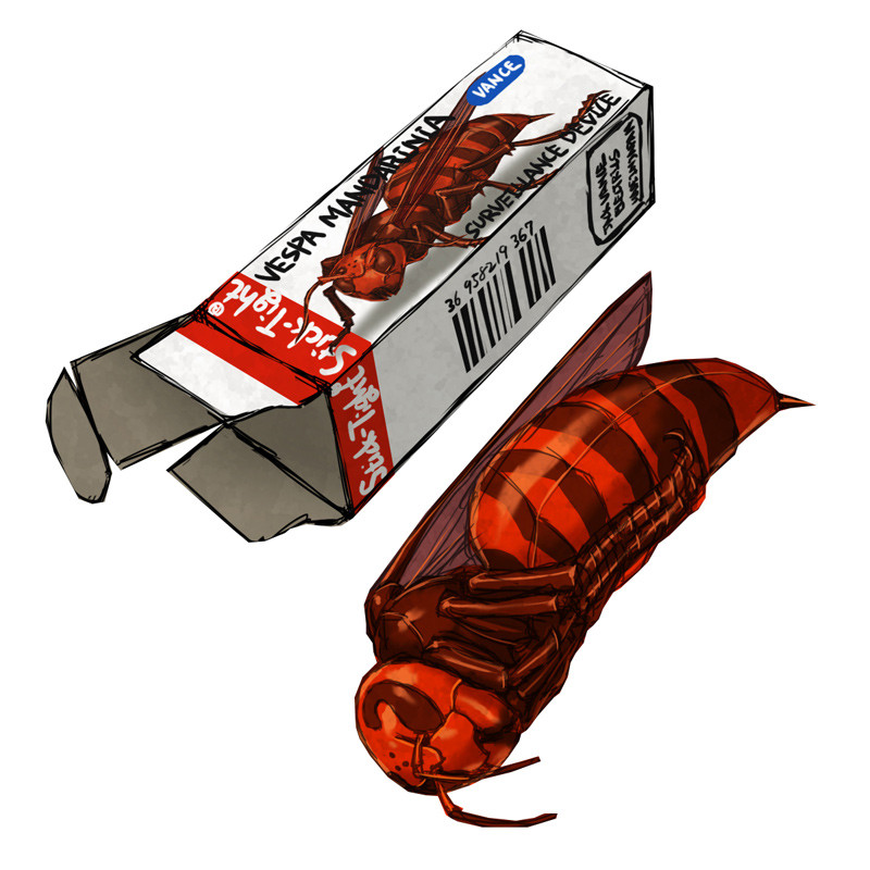 これらのスズメバチは武器の類で、その威力を表すのか、それともドローンのような撮影機材で、画像の鮮明さを表すのか…。