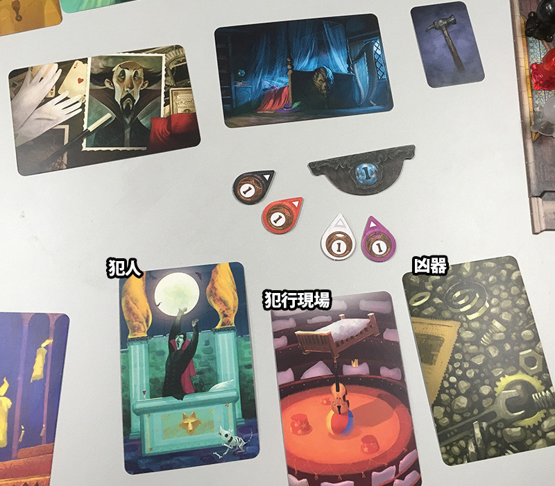 犯人、犯行現場、凶器を言い当てるゲームです。
